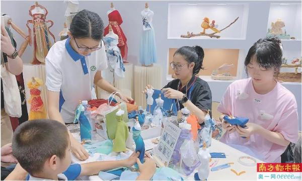 “创意工坊实践体验区”是吸引观众驻足停留人气最旺的角落之一。深圳师生成为“创意导师”,与观众一起体验古老而新潮的工艺魅力。