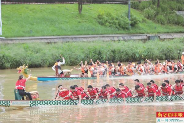 南都讯 记者王睦广 端午节即将到来,近日,深圳市光明区社区龙舟赛开赛,茅洲河上龙舟竞渡,现场气氛热烈。经过角逐,最终光明区凤凰社区龙舟队获得冠军,白花社区白花实验龙腾队、公明社区扬帆起航队分别获得亚军、季军。