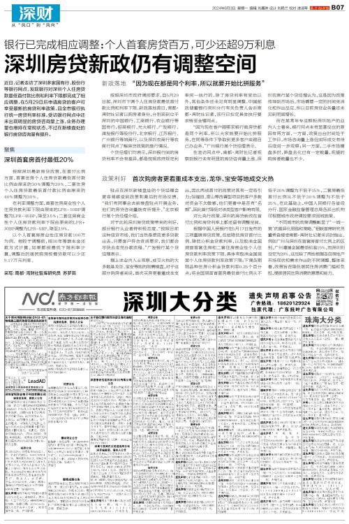 近日,记者走访了深圳多家国有行、股份行等银行网点,发现银行对深圳个人住房贷款最低首付款比例和利率下限都完成了相应调整,在5月29日后申请房贷的客户可享受最新的房贷利率政策,且全市银行执行统一房贷利
