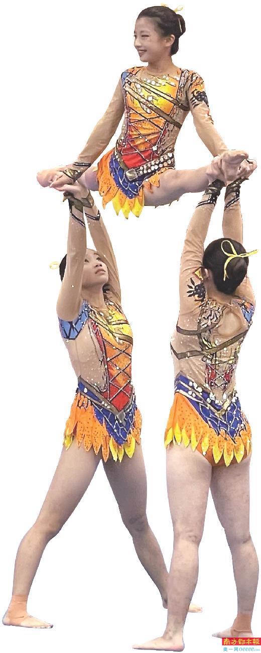 坪山娃古子涵(左二)获得少年组12-19岁女子三人第二名。受访者供图