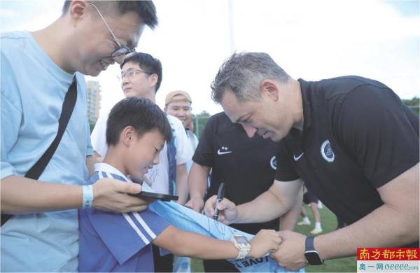 近日,深圳新鹏城足球俱乐部在丽湖足球训练基地举行首次球迷开放日活动。百余名球迷到场全程观看了一线队训练,并以多种形式与一线队全员进行了互动交流。主教练赫苏斯·塔托在接受媒体采访时表示,球员有很强的欲望将比赛踢好,愿意为了这座城市付出一切。