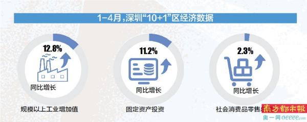 今年一季度深圳GDP同比增长6.4%,高于年初立下的全年GDP增长5.5%的预期目标,全市经济运行取得“开门红”。近期,深圳市统计局公布了1-4月主要经济指标情况,全市规模以上工业增加值同比增长12.8%,固定资产投资同比增长11.2%,社会消费品零售总额同比增长2.3%。