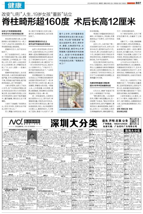 整个上半年,对于重度脊柱畸形的深圳女孩小新(化名)来说,可以用“凤凰涅槃”来定义这段岁月。牵引、矫形手术、康复,从焦虑到不安,从等待到希望,躺在中山大学附属第八医院脊柱外科的病床上,告别19年的病