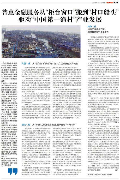 普惠金融服务从“柜台窗口”搬到“村口船头”驱动“中国第一渔村”产业发展