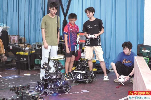 在机电与控制工程学院RobotPilots实验室里,一场“机甲大战”正在激烈进行,实验室内人头攒动,考生和家长们随着机器人前进、跳跃、撞击的动作,发出此起彼伏的赞叹声。RobotPilots(RP)是深大第一个以参加机器人赛事为目的的技术型社团,也是全国乃至亚太地区大学生机器人竞赛的一支劲旅。