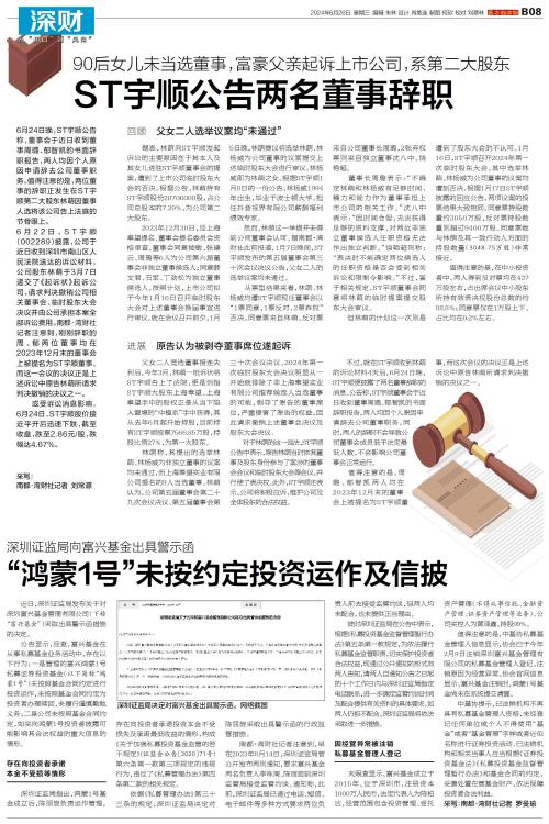 6月24日晚,ST宇顺公告称,董事会于近日收到董事周璐、郁智凯的书面辞职报告,两人均因个人原因申请辞去公司董事职务。值得注意的是,两位董事的辞职正发生在ST宇顺第二大股东林萌因董事人选将该公司告上