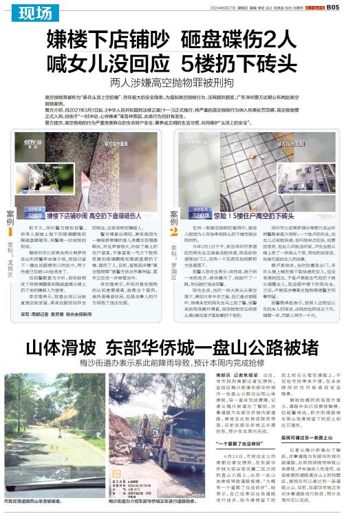 嫌楼下店铺吵 砸盘碟伤2人 喊女儿没回应 5楼扔下砖头