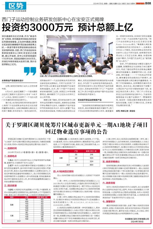 罗湖区湖贝统筹片区城市更新单元A1地块项目(下称“A1地块”)拟于近期开展回迁物业选房活动,为确保各被搬迁人知悉,现将A1地块回迁物业选房主要内容公告如下: 一、选房时间 2024年7月26日