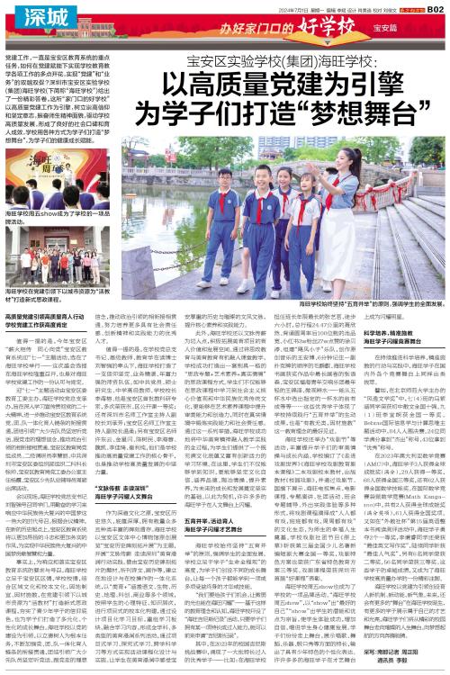 宝安篇 党建工作,一直是宝安区教育系统的重点任务,如何在党建赋能下实现学校教育教学各项工作的多点开花,实现“党建”和“业务”的双融双促?深圳市宝安区实验学校(集团)海旺学校(下简称“海旺学校”)