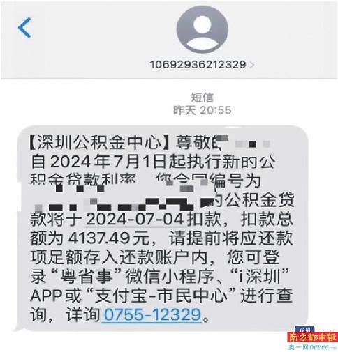 7月1日,市民李女士收到深圳市公积金中心的利率下调通知,发现还款金额比上个月多了50块。