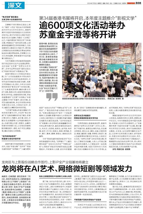 据介绍,引进上影集团项目是龙岗区打造IP产业集聚高地的第一步。未来,龙岗区将以IP产业为切入点,强链补链、串珠成链,在与优势制造业相互赋能,以及AI艺术、网络微短剧等IP衍生数创领域方面持续发力,不断丰富和完善IP及相关领域全产业链条,提升本土产品文化附加值和对外传播力,持续擦亮国家级文化产业示范园区龙岗数字创意产业走廊品牌,打造IP产业“新廊道”。