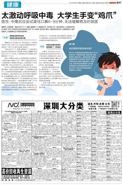 南都讯 记者谢萌 “我的手动不了了,胳膊、腿都麻了!”凌晨两点半,深圳某大学一男生宿舍内,小吴熬夜打游戏,收获“五杀”后发现自己的手扭曲成“鸡爪”状。头发昏、脸发烫。随后小吴被送到龙华区人民医院就