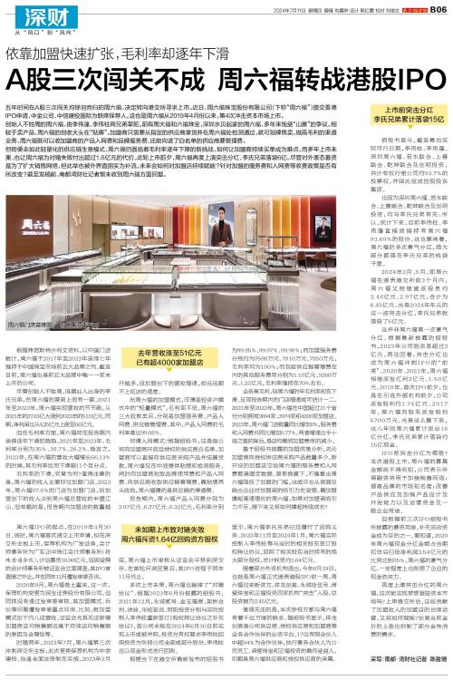A股三次闯关不成 周六福转战港股IPO