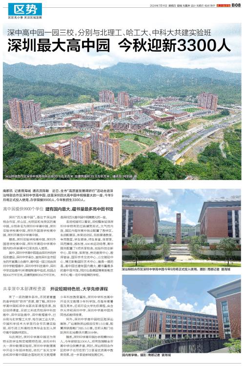 深圳最大高中园 今秋迎新3300人