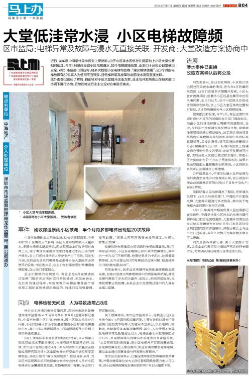 被点名单位 中海地产 介入处理单位 深圳市市场监督管理局龙华监管局、民治街道办 近日,龙华区中海学仕里小区业主反馈称,由于小区排水系统存在问题加上小区大堂位置相对低洼,今年4月暴雨