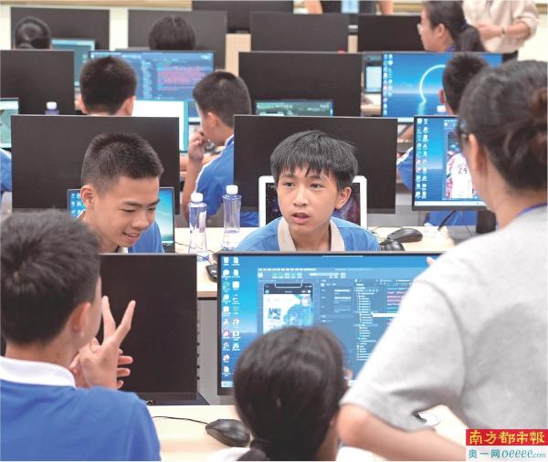 7月15日,“福田少年行”之“科创少年调研团”活动正式开启。成员们学习“微信小程序教育平台”的使用技巧等知识。 南都记者 赵炎雄 摄