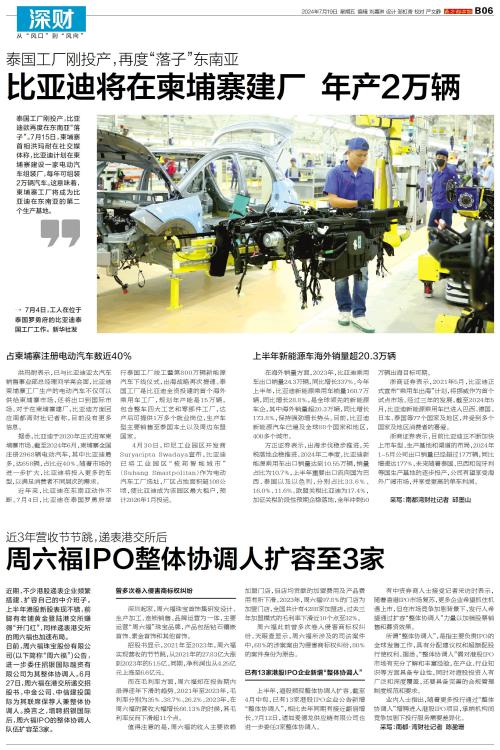 泰国工厂刚投产,比亚迪欲再度在东南亚“落子”。7月15日,柬埔寨首相洪玛耐在社交媒体称,比亚迪计划在柬埔寨建设一家电动汽车组装厂,每年可组装2万辆汽车。这意味着,柬埔寨工厂将成为比亚迪在东南亚的第