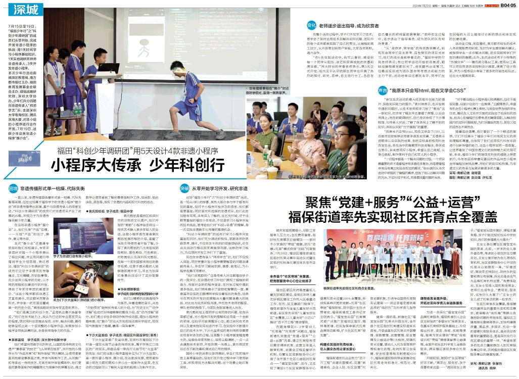 城市家庭规模缩小,双职工家庭育儿压力大;全托费用偏高,临时性托育需求日益增加……面对不少家庭的“带娃”难题,依托“党建+托育”模式持续“加码”托育服务。7月20日,福田区福保街道社区临时托育点集中