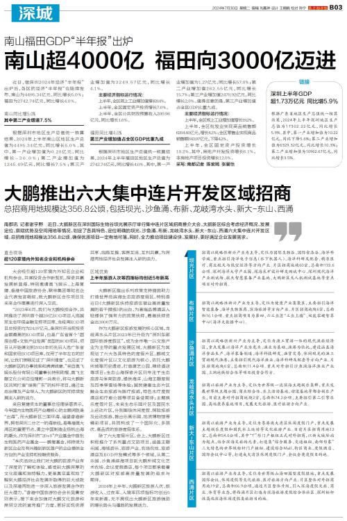 近日,继深圳2024年经济“半年报”出炉后,各区的经济“半年报”也陆续发布。南山为4495.34亿元,同比增长5.0%;福田为2742.74亿元,同比增长4.0%。 南山同比增5.0%