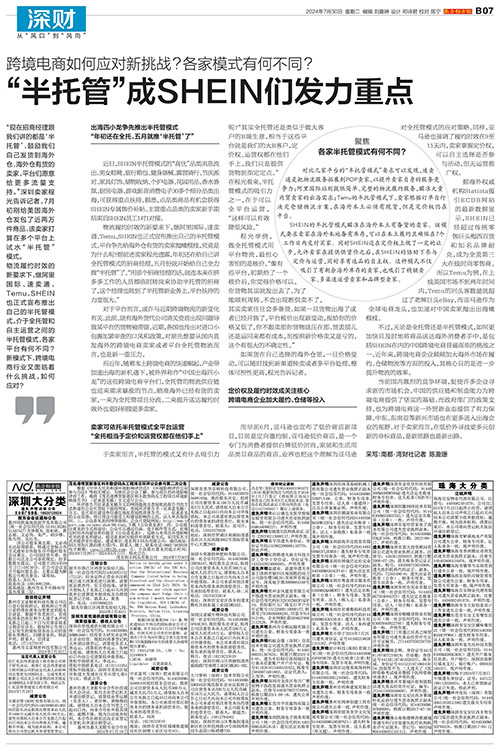 “现在招商经理跟我们讲的都是‘半托管’,鼓励我们自己发货到海外仓,海外仓有货的卖家,平台们愿意给更多流量支持。”深圳卖家程光告诉记者,7月初刚给美国海外仓发包了近两万件商品,该卖家打算在多个