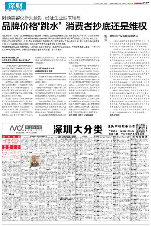 药监局松绑,“觅光们”迎来集体复活的“窗口期”。7月8日,国家药监局发布公告,原本定于2024年4月1日起实施的射频美容仪新规,调整至2026年4月1日落地。这意味着,原本没在限期内取得“械字号”