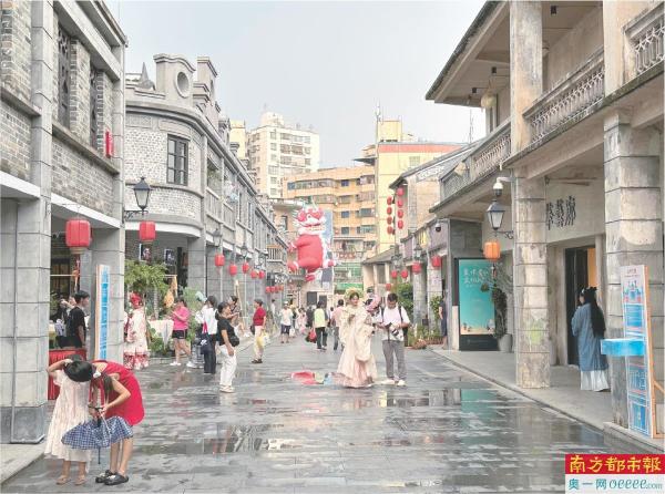游客在观澜古墟留影打卡。