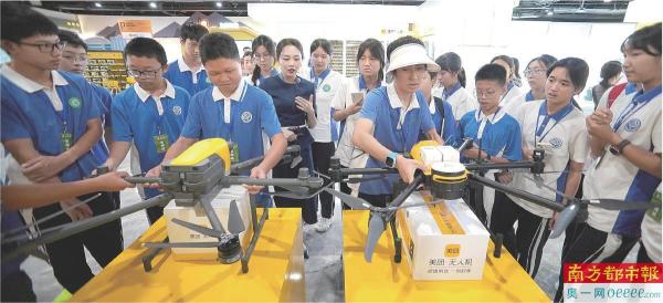 当天首站,少年们走进南山科技园内无人机行业龙头企业的展厅。在该企业展厅内,除了小型无人机外,还有用于农业领域、矿物勘探、空中货运等特殊用途的无人机。少年们从现场了解到,该企业开发的针对农业领域的无人机产品,其功能主要有农药喷洒、作物监测、地形测绘、精准农业等,惠及超20万新农人。