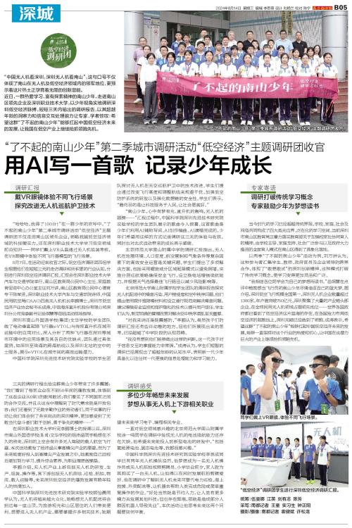 “中国无人机看深圳,深圳无人机看南山”,这句口号不仅体现了南山在无人机及低空经济领域内的领军地位,更预示着这片热土正孕育着无限的创新潜能。 近日,一群热爱学习、富有探索精神的南山少年,走进南山区
