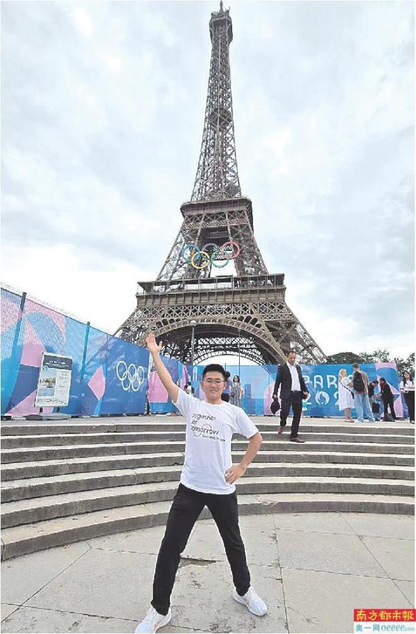 这是一组具有跨时空连接意义的照片。十年前,陈冠维裹着两层厚厚的羽绒服,站在埃菲尔铁塔前拍摄游客照;十年后,他身穿印着“Together for Tomorrow”字样的白色T恤,位于同一地点、以同样的姿势,记录下了这一难忘瞬间。