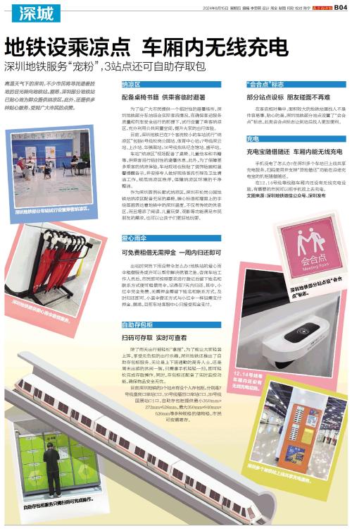 高温天气下的深圳,不少市民将寻找避暑胜地的目光转向地铁站。据悉,深圳部分地铁站已贴心地为群众提供纳凉区。此外,还提供多种贴心服务,受到广大市民的点赞。 纳凉区