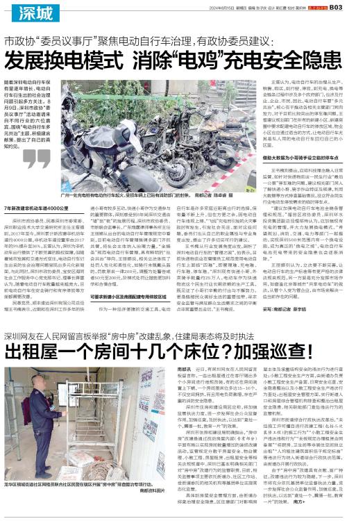 随着深圳电动自行车保有量逐年增长,电动自行车衍生出的社会治理问题引起多方关注。8月9日,深圳市政协“委员议事厅”活动邀请来自不同行业的六位嘉宾,围绕“电动自行车多元共治”主题,积极建言献策,提出了