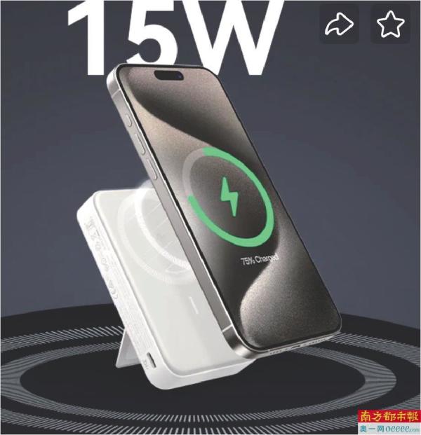 据截图,该充电宝左侧有一个Type-C充电口,另一侧的偏上方有LCD屏显实时显示剩余电量。有网友指出,该直播中使用的充电宝是中国品牌Anker MagGo,由安克创新公司制造。