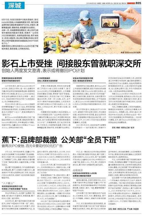 8月15日,在发文澄清IPO相关质疑后,影石Insta360创始人刘靖康再度发文称,我们会跟监管积极沟通变更或撤回IPO计划。并表示,理解尊重监管、拥抱市场、积极履行社会责任。 此前一天,刘靖康