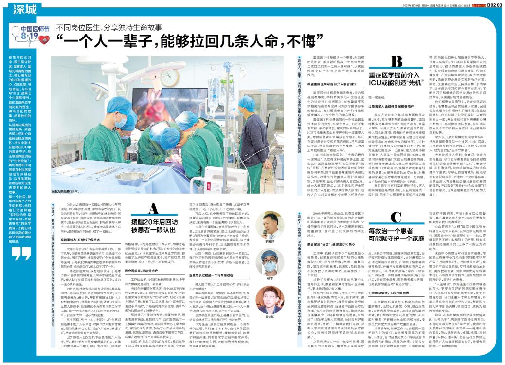 在生命的长河中,医生是守护者,是摆渡人,是与死神赛跑的勇士。他们用专业的知识和温暖的心,点亮希望,书写奇迹。今年8月19日,是第七个中国医师节,我们邀请来自不同岗位的医生,聆听他们的故事,感受他们