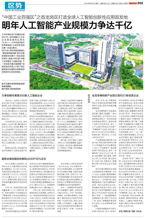 上半年地区生产总值同比增长9.0%,全区规模以上工业企业增加值同比增长14.4%——上半年经济运行的亮眼表现,让深圳市龙岗区再一次成为焦点。 8月15日,深圳市政府新闻办“推动高质量发展”系列主