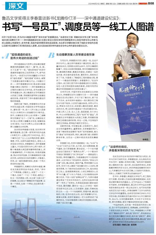 李春雷。 8月17日至18日,作为2024南国书香节“深中共读”的重要活动,“走进世纪工程 领略纪实文学之美”深中两城共读《龙腾伶仃洋——深中通道建设纪实》主题分享会