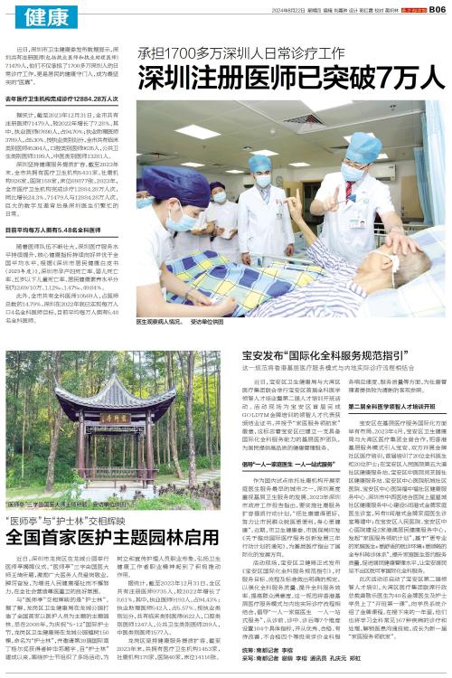 近日,深圳市卫生健康委发布数据显示,深圳共有注册医师(包括执业医师和执业助理医师)71479人,他们不仅承担了1700多万深圳人的日常诊疗工作,更是居民的健康守门人,成为最坚实的“医靠”。