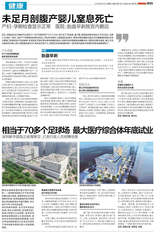 近日,有网友在社交媒体平台发布了一则“在医院待产十几个小时,孩子没了”的信息。据了解,网帖叙述事件发生于今年5月份,当事人为深圳一孕妇,当时产下的男婴经抢救无反应。深圳市光明区人民医院回应表示,事