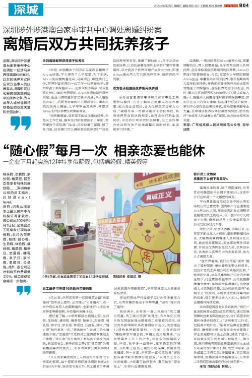 相亲假、恋爱假、家长假、精英假,甚至女性享有特殊的痛经假......深圳有家公司的员工福利,已经是next level。 近日,记者从深圳本土最大房产中介机构乐有家获悉,该公司从2024年9月1