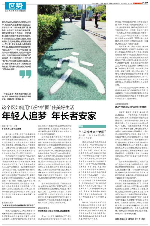 行走在龙华,为居民提供娱乐、购物、餐饮、家政等服务功能的业态随处可见。 南都记者 潘莹瑜 摄 晨光初破晓,只需步行或骑行几分钟,就能踏入绿意盎然的街边公园;不必远行,在