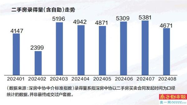 据深房中协统计数据,2024年8月全市二手房交易量4671套,环比下降13.2%,同比增长50.0%。