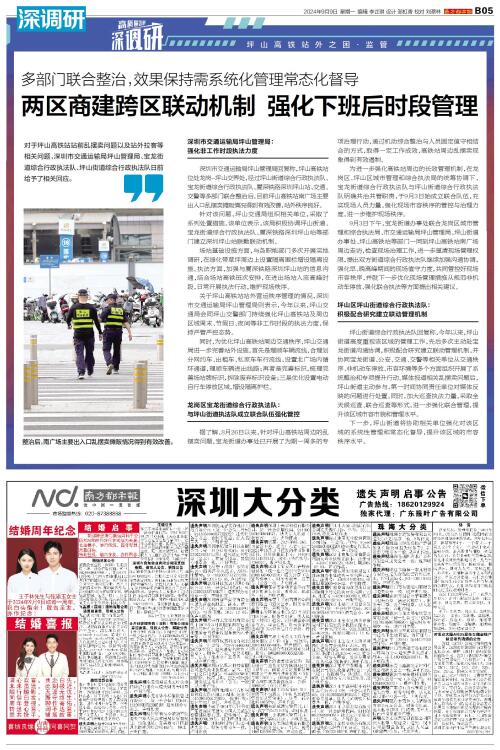 坪山高铁站外之困·监管 对于坪山高铁站站前乱摆卖问题以及站外拉客等相关问题,深圳市交通运输局坪山管理局、宝龙街道综合行政执法队、坪山街道综合行政执法队日前给予了相关回应。 深圳市交通运输局坪山