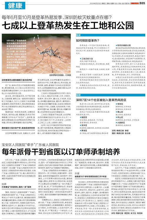 9月18日,广东省疾病预防控制局公布今年8月全省法定传染病疫情概况,其中共报告登革热1220例,较7月增长987例。记者从深圳市疾控中心了解到,截至9月14日12时,深圳14个区域正开展登革热本地