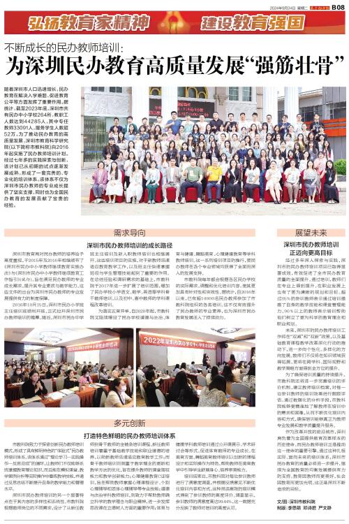 随着深圳市人口迅速增长,民办教育在解决入学难题、促进教育公平等方面发挥了重要作用。据统计,截至2023年底,深圳市共有民办中小学校264所,教职工人数达到44285人,其中专任教师33091人,服