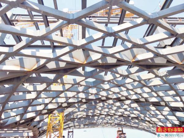 3. 图为马鞍形双曲面钢结构网格。 中建六局建设发展有限公司华南分公司供图