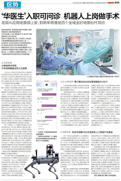 语音讲述症状,系统就能迅速评估病症、提供就医指导,还能无缝对接挂号; AI手术机器人上岗,帮助医生“快、准、精”分离病变组织,创小愈合快; 政务AI大模型应用上线,公共场所人员走散,只需简单描
