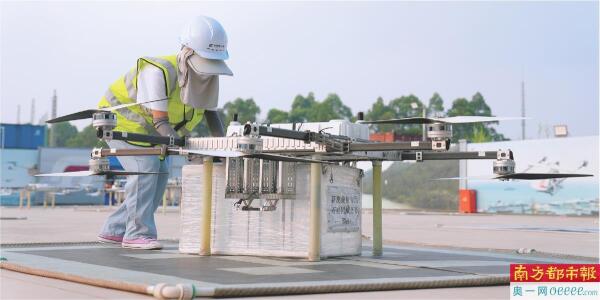 在深圳宝安区的丰翼无人机运营中心,工作人员正在装载货物。