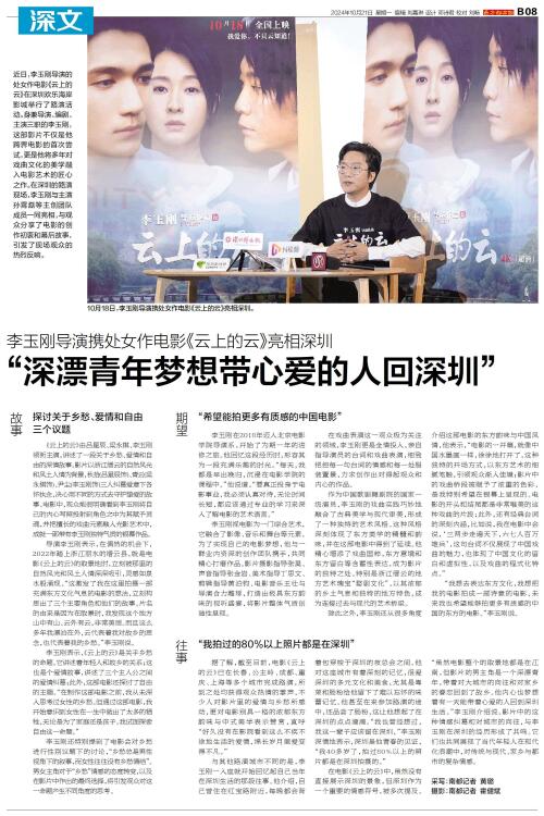 10月18日,李玉刚导演携处女作电影《云上的云》亮相深圳。