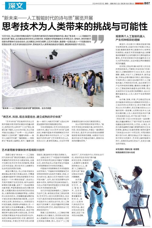 10月18日,关山月美术馆集合国内11位具有代表性的艺术家的多媒体作品,推出“新未来——人工智能时代的诗与思”展览。此次展览由深圳市关山月美术馆、中国美术学院跨媒体艺术学院主办,雷电所、深圳市数字