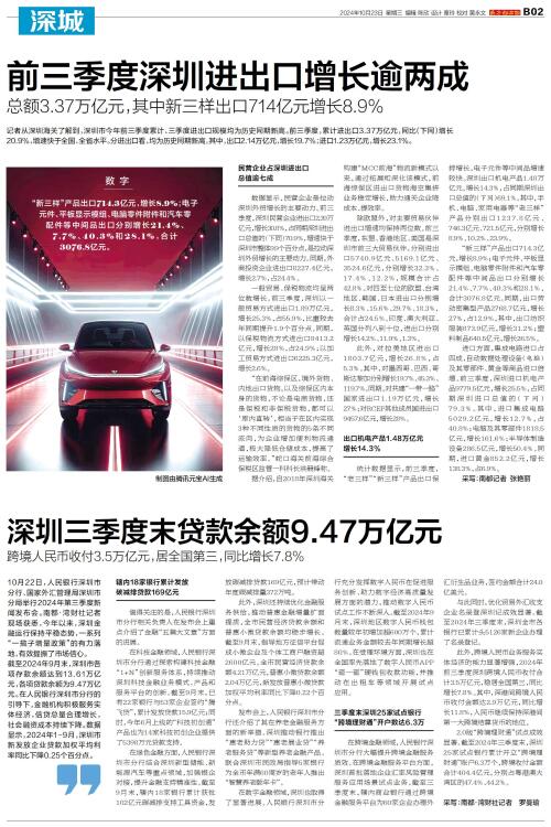 10月22日,人民银行深圳市分行、国家外汇管理局深圳市分局举行2024年第三季度新闻发布会。南都·湾财社记者现场获悉,今年以来,深圳金融运行保持平稳态势,一系列“一揽子增量政策”的有力落地,有效提